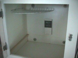 Mount heating element into top, inside of box using 1/4" wood screws. Wire Muffin fan to power terminals on heating unit and mount muffin fan inside to the top. Use small bird toy beads for spacers between fan and top of box. Mount the wire rack in the corner. We also use a digital Thermometer/ Hygrometer available from Radio Shack which is mounted low on the back wall at the approximate height the chicks will be.